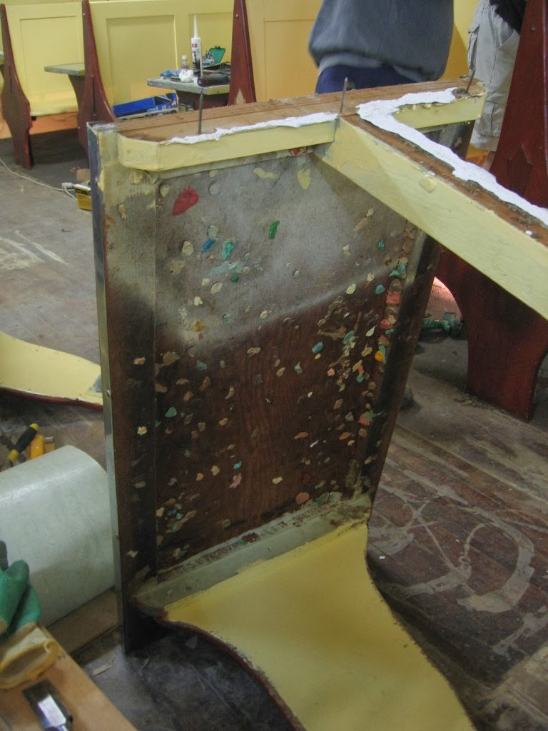 | Proving that I did some work on the restoration and didn't just leave it all up to Roger. Here I am scraping paint off the booths. |